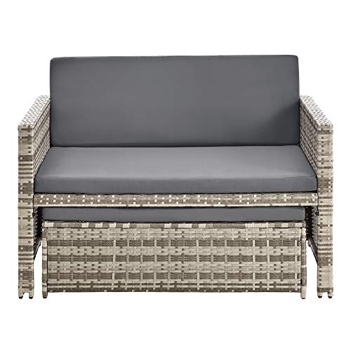 En.casa - Set di Mobili da Giardino Arredo Esterno in Polyrattan con Cuscini Set Composto di 1 Divano a 2 Posti + 1 Tavolino Basso Multiuso - Beige/Grigio