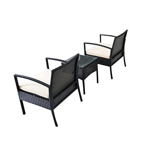 Alta Qualità: Le sedie fatto da Rattan e Tessuto di alta qualità, durevole e impermeabile, facile da pulire. Il tavolino con piastra di vetro che si può mettere tè, café e merendine.
