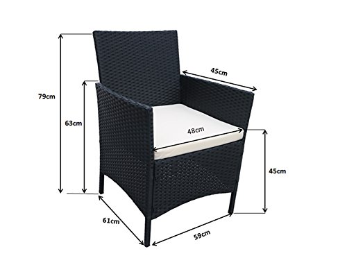 EBS Set di Mobili Ratten Vimini Patio da Giardino Prato Arredamento, Aqua Resistente Salottino 3 Sedie (4 posti) Tavolo per Esterno e Interno - Confezione da 4, Nero