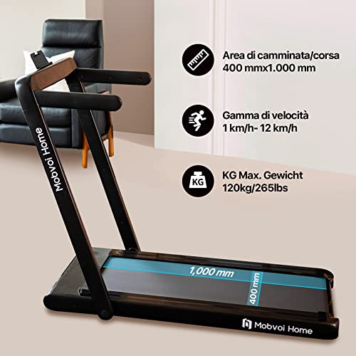 Mobvoi Treadmill Black, Home Tapis roulant, pieghevole, altoparlante Bluetooth integrato, telecomando, macchina per camminare e correre per esercizi di fitness da casa al coperto, Nero