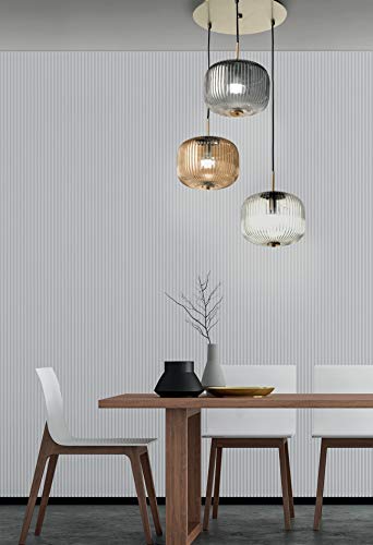 Sospensione in vetro soffiato millerighi composta da 3 pendenti. Struttura in metallo verniciato. Cavetti regolabili in lunghezza. Disponibile in diverse varianti di colore.