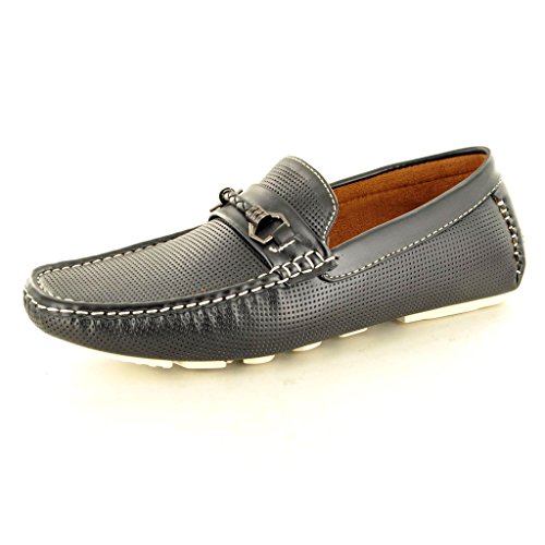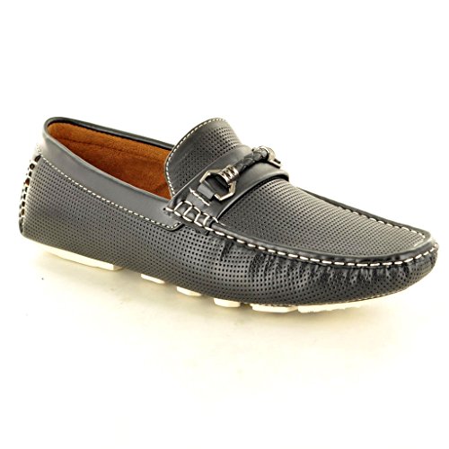 Mocassini casual perforati da uomo mocassini scivolare su scarpe di guida, Nero, 45 EU