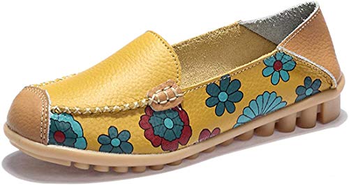 Z.SUO Mocassini Donna in Pelle Moda comode Loafers Scarpe da Guida(35 EU,Giallo.1)
