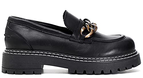 Mocassini in Pelle con Accessorio Catena Nero 40