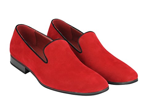 Mocassini da Uomo in Pelle Scamosciata e Vernice Lucida Mocassini Informale MOD Scarpe da Guida [Camoscio Rosso,UK 11 EU 45]