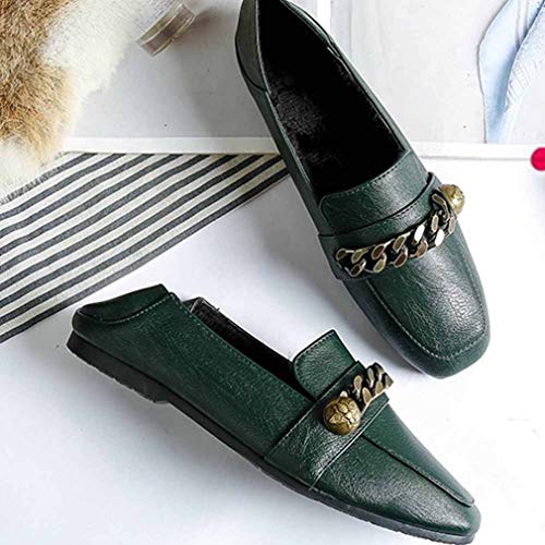 Mocassini Piatti da Donna Caldi in Pelle Foderata Corta Felpata Casual Scarpe in Pelle Catena in Metallo Moda Punta Quadrata Grande Taglia 43 Mocassini Femminili