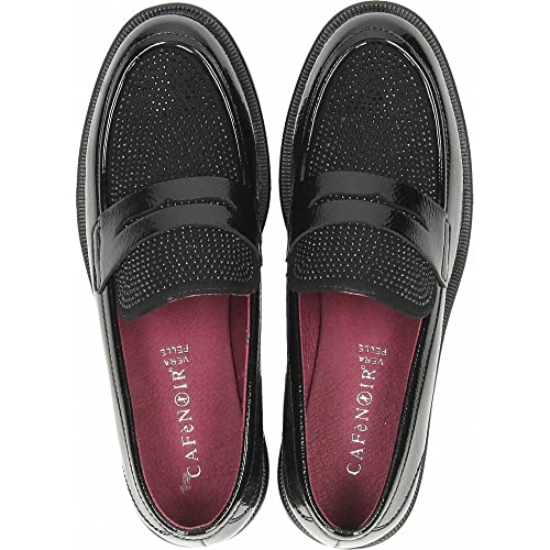 Mocassini in Similpelle Spazzolata Effetto Vernice con Strass Nero 37