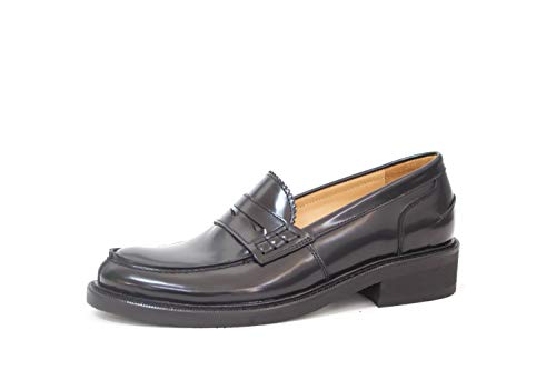 Mocassino College Numeri Grandi in Pelle Abrasivato Nero, Senza Lacci, Artigianale, Made in Italy