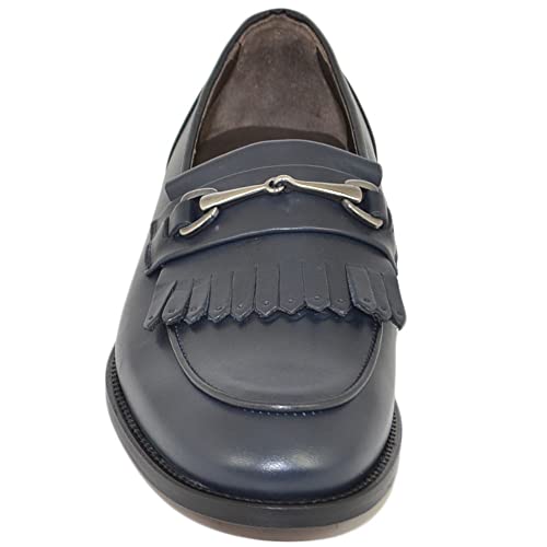 Mocassino Uomo LS Luisantiago con Accessorio Argento in Vera Pelle di Nappa Blu Spazzolato con Frange Suola Cuoio (44 EU)