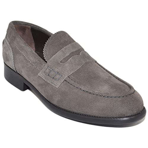 Mocassino Uomo in Vera Pelle Scamosciato Grigio Handmade Cuciture College Inglese Made in Italy (42 EU)