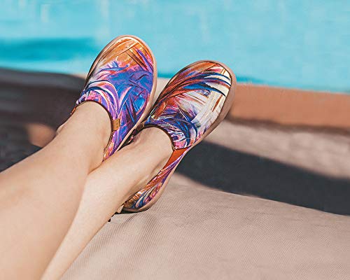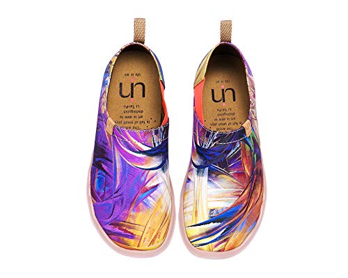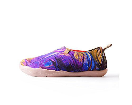 UIN - mocassino viola da donna in tela dipinta con disegni astratti.