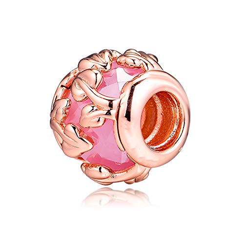 2019 - Perlina decorativa in argento 925 con foglie, colore: rosa autunnale