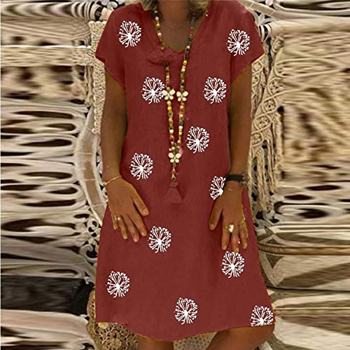 MOCEAL - Abito estivo casual da donna, con scollo a V, tinta unita, linea ad A, Colore: rosso, S