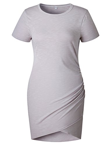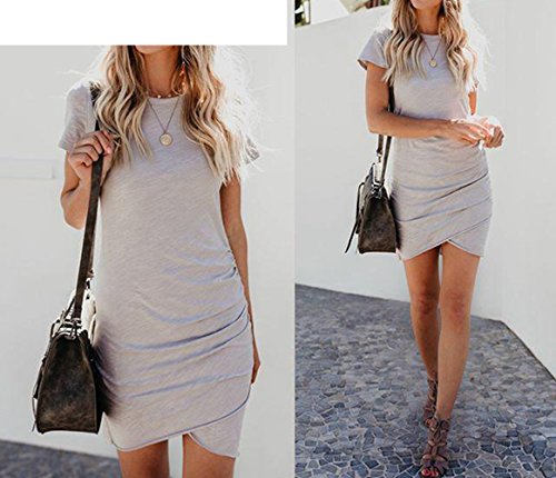 Moceal - Mini abito estivo da donna, con scollo rotondo, a maniche corte, irregolare, mini abito