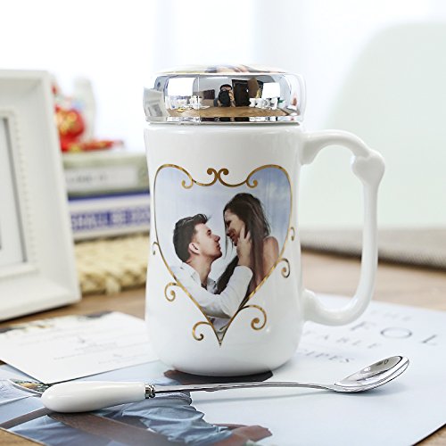 MOCER Creative Diy facilmente Foto tazza Mug Cup coppa in ceramica coppie tazza con coperchio e cucchiaio, affiliata la superficie del tappo