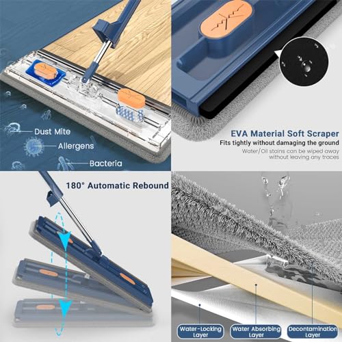 【Raschietto di disidratazione autonomo】: il mop piatto è dotato di un raschietto di disidratazione. Devi solo spostare il raschietto su e giù per disidratare il mocio, e il raschietto è dotato di un pettine dentato, che può raschiare via i capelli e altri articoli vari sul mocio, il che è molto comodo e pratico.