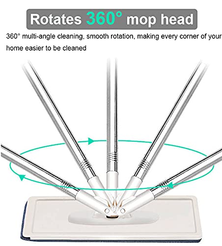 Testa girevole a 360°: la testa del mocio a 360° estende la possibilità di contatto sotto e intorno ai mobili e facilita l'utilizzo di polvere e macchie in aree difficili da raggiungere, la pulizia in diverse angolazioni e la pulizia della casa.