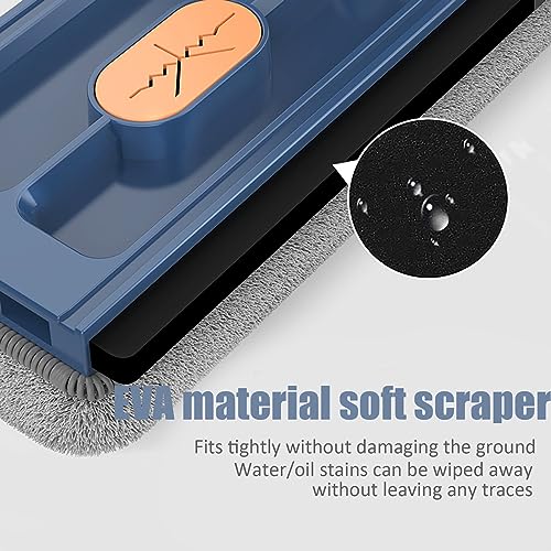 [Mocio per pavimenti con funzione di strizzatura]Mocio piatto grande La piastra di base è sollevata e l'acqua in eccesso può essere spremuta più volte dal dispositivo raschietto sul manico. Allo stesso tempo, raschiare i capelli e la polvere dal mocio ed evitare di toccarli il panno direttamente con le mani.