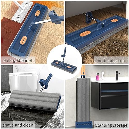 Mocio piatto grande, mocio per pavimenti con funzione strizzante, set mocio piatto con secchio, mocio con snodo girevole a 360° con funzione strizzante per piastrelle in laminato di legno duro,Blue 2