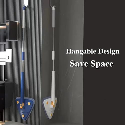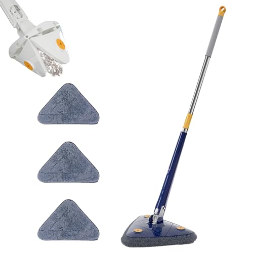 Mocio per la pulizia regolabile a 360 gradi, mocio triangolare girevole regolabile, con cuscinetti di ricambio, nuovo mocio triangolare telescopico (3 strofinacci, blu)