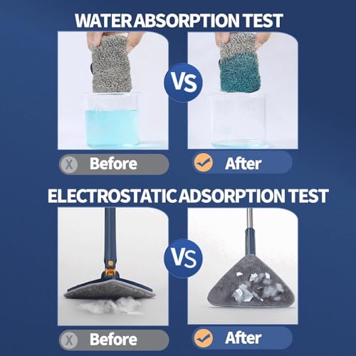 Mocio triangolare flessibile: mocio per la pulizia regolabile girevole a 360 gradi, design triangolare, migliore vestibilità, non lascia sporco sugli angoli. Può essere ruotato di 360° per la pulizia.