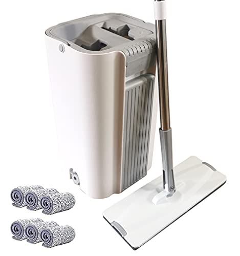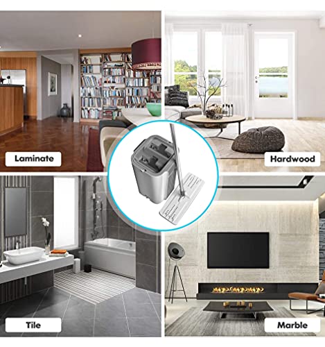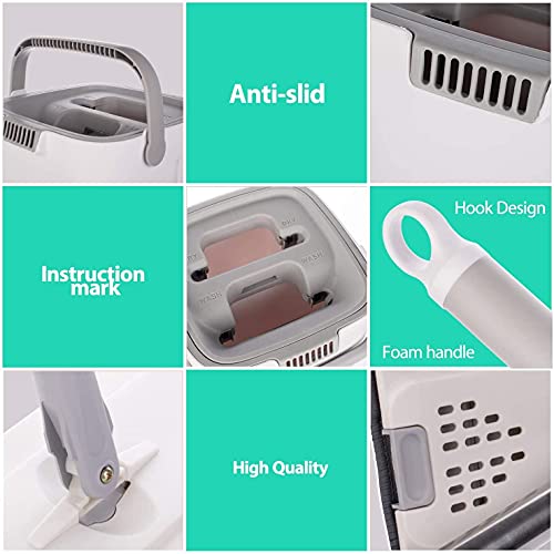 - Maniche libere - Tenere le mani dallo sporco, l'innovativo sistema di lavaggio e asciugatura dritto rende più facile il lavaggio e la spremitura. Un secchio a due scanalature consente di bagnare e asciugare facilmente la spazzola, assicura che lo sporco dal pavimento venga sollevato e non ritorni mai. Nessuna spruzzatura, dispone di un paraschizzi che impedisce all'acqua di fuoriuscire. Riduce drasticamente l'uso dell'acqua durante la pulizia in modo più efficace. Forniture perfette per la pulizia della casa.