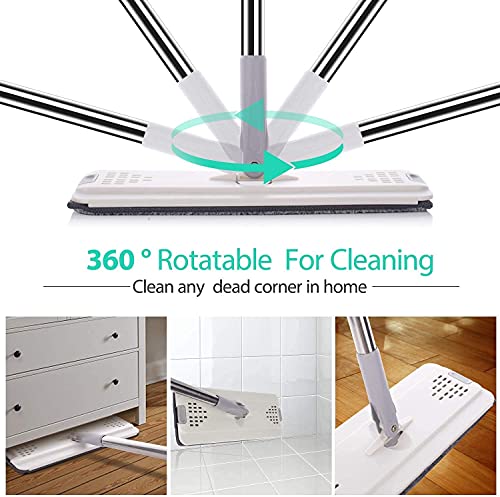 Set di mocio e secchio in microfibra, con manico in acciaio inox, extra large e flessibile a 360°, per pulire pavimenti in legno, piastrelle, vinile, laminato, 2 pezzi