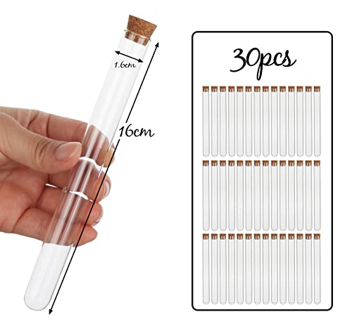 Mocraft - Provette in vetro da laboratorio con tappo in sughero, 16 x 160 mm, trasparenti, 30 pezzi, con imbuto ed etichette, 20 ml