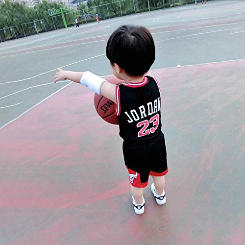 Modaka 2PCS Bambini Basket Set Divise Sportive per Ragazzi Senza Maniche Sportswear Traspirante T-Shirt e Pantaloncini Set Sport Size 130cm (Nero)