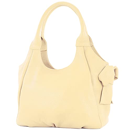 Modamoda de - IT28 - Borsa a tracolla da donna in pelle, Pelle color crema., Medium