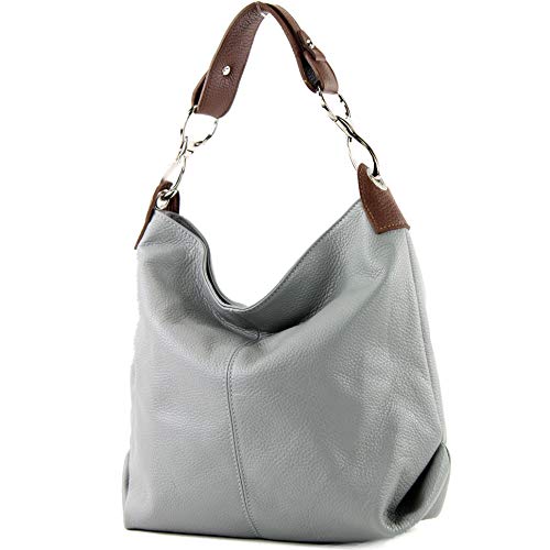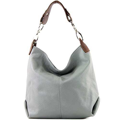 Modamoda de T168 - Borsa a tracolla in pelle, grigio/marrone, Medium
