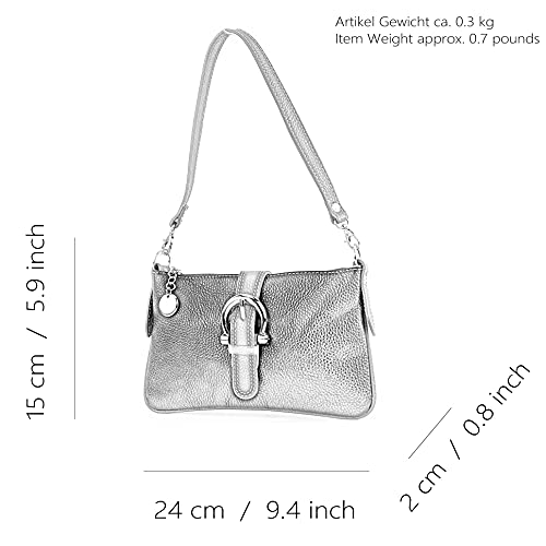 Dimensioni: circa: lunghezza 24 cm x larghezza 2 cm x altezza 15 cm | Peso: circa: 0,30 kg | Materiale esterno: pelle | Materiale interno: tessuto | parti in metallo: argento