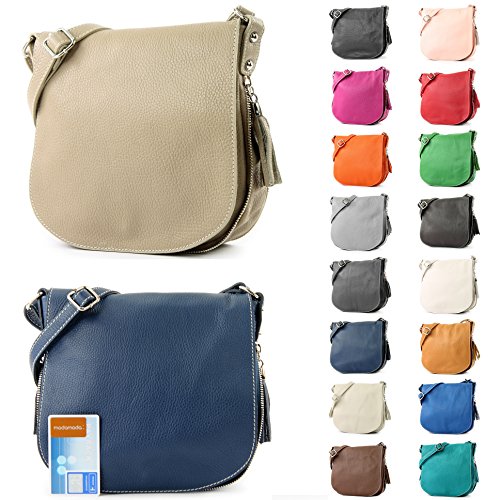 Modamoda de - ital messaggero del cuoio Shoulder Bag T06, Colore:blu petrolio