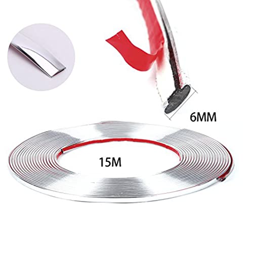 MASO - Modanatura cromata per auto, finitura decorativa, striscia autoadesiva, 6 mm x 15 m, colore: Argento