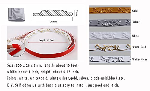ITTA - Modanatura flessibile autoadesiva, 10 piedi Peel and Stick Flower Wall stampaggio Trim modanatura soffitto per armadi, porte, mobili, decorazioni per la casa (nero e oro)