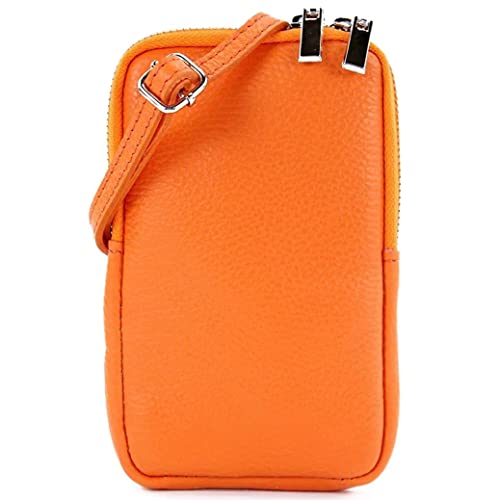 Modarno Piccola Borsa a Tracolla per Cellulare uomo e donna in Vera Pelle 11cm x 2cm x 18cm (Arancione)