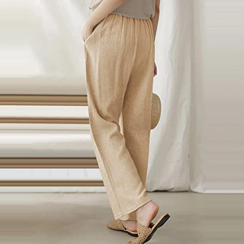 Modaworld Pantaloni da Donna Estivi in Lino e Cotone Pantaloni Larghi Ragazza Eleganti Vita Alta Pantalone Largo Estivo Pantaloni Taglie Forti con Elastico in Vita Elasticizzati