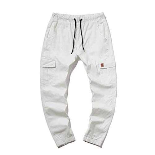 Modaworld Pantaloni Uomo Lunghi Estivo con Coulisse Multi-Tasca Maschio Cargo Pants Casual Lungo Leggero Slim Elastic Comodo