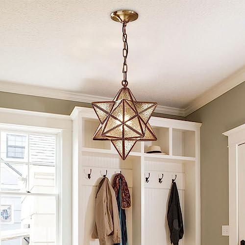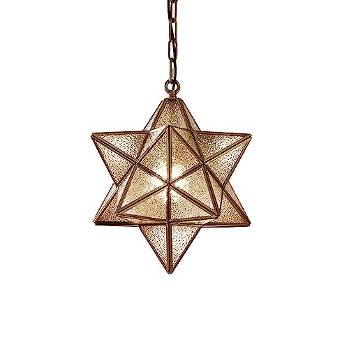 MODEBHD Lampada a sospensione in vetro ad acqua Lampada a forma di stella Paralume a sospensione Illuminazione a sospensione Raccordi in ottone Lampada da soffitto E27 Base Lampadario corda Lampada a