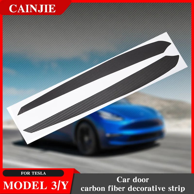 For Model 3 Model Y 2021 Accessories Car door carbon fiber decorative strip Door Trim Decoration Styling Decoration