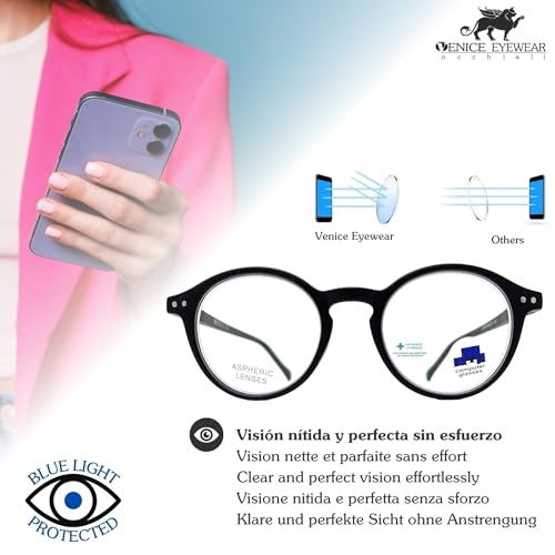 New Model Occhiali da Lettura Presbiopia UNISEX Anti Luce Blu Uomo e Donna Computer Glasses Lennon Professional Executive Venice Visione Chiara - Moda Comodo - diversi colori (Nero, 1.50)