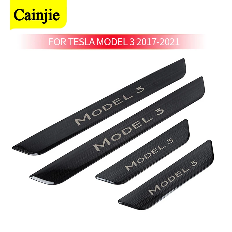 Model3 2021 Car Door Sill Plate Protection For Tesla Model 3 Accessories Car Threshold Strip Car Styling Metal Sticker 2017-2021