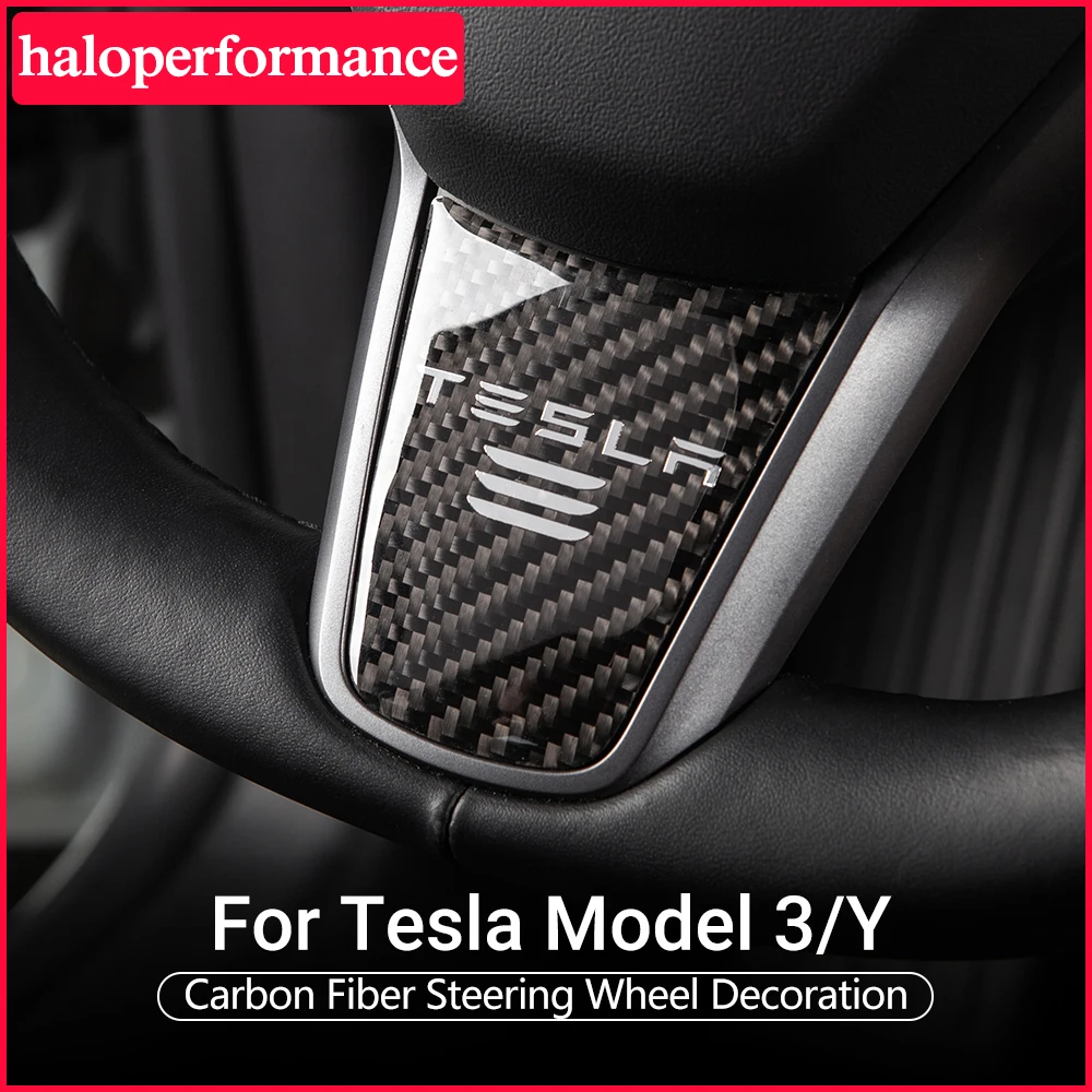 Model3 Car Steering Wheel Decoration For Tesla Model 3 Y 2021 Accessories Carbon Fiber Sticker Model Three Accessory Interior