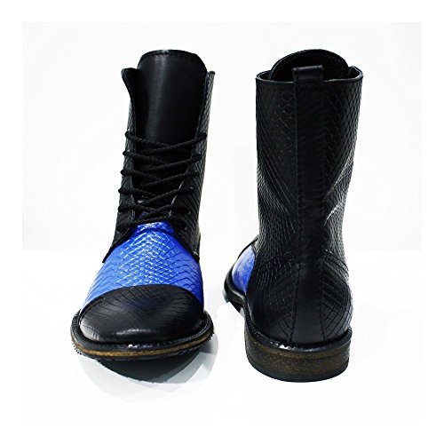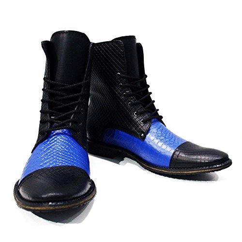 Modello Cinisello Balsamo - EU 45 - US 12 - UK 11-30 cm - Handmade Italiano da Uomo in Pelle Colore Blu Stivali Alti - Vacchetta Pelle in Rilievo - Allacciare