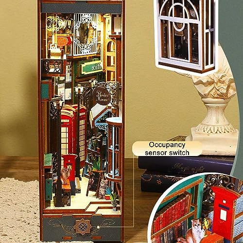 DIY Book Nook Kit, Modello Fermalibri con Luce LED, Inserto per Libreria con Puzzle in Legno 3D, Prenota Inserisci Decor Alley