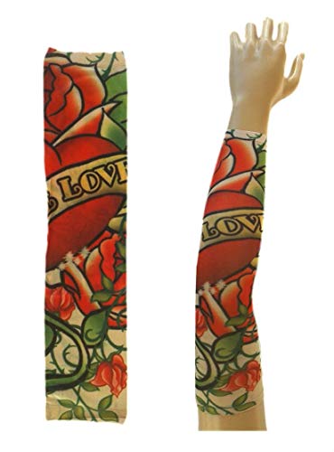 W128 - Modello 4 - Manicotto Tattoo - Indossabile - Manica - Tatuaggio Finto - Immagine - Cuore Rose Love - Tatoo - Mezza Manica - Tribale