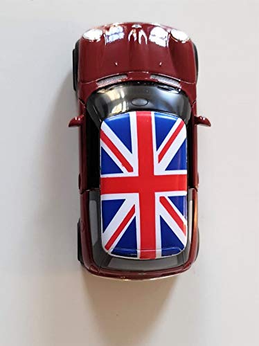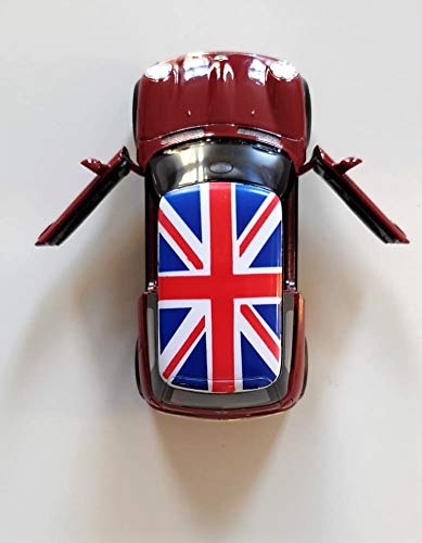 Modello Moderno Mini Cooper - Giocattolo in Metallo Pressofuso e Parti di Plastica, Azione "Tirare Indietro e Andare", Rosso / Tetto Union Jack / Ricordo Britannico da Londra Inghilterra Regno Unito