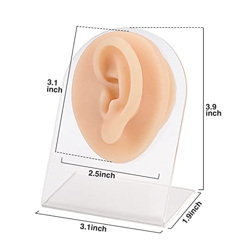 Modello di orecchio in silicone morbido (a sinistra) con supporto acrilico, stampo flessibile per orecchio per la pratica del piercing, orecchio in gomma per l'esposizione dei gioielli