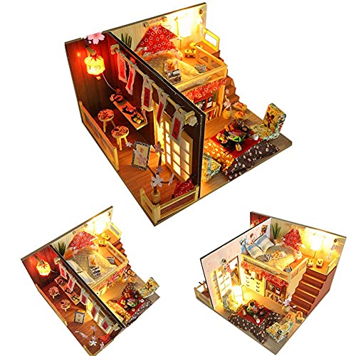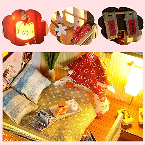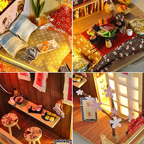 Modello di Ristorante Giapponese da Pranzo Kimono Ciliegio 3D Elementi in Stile Giapponese Ristorante di Sushi Kit Casa delle Bambole Assemblato in Miniatura Kit Casa in Legno Puzzle Fatto A Mano CAS