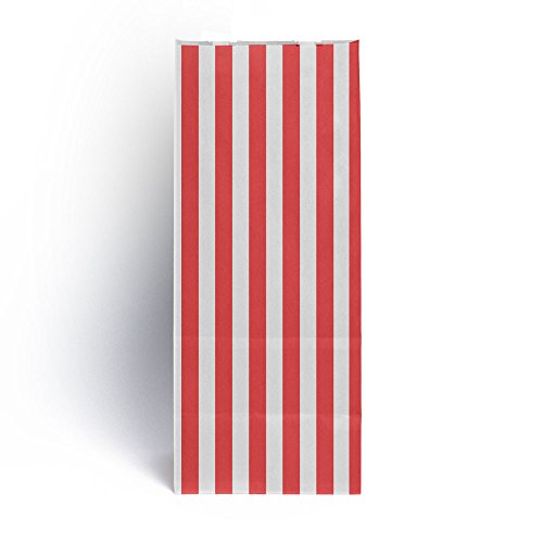 Modello Pick n Mix, sacchetti di carta a righe rosse per dolciumi, popcorn, regali, feste, buste di carta da 10,2 x 24,1 cm e 7,6 cm